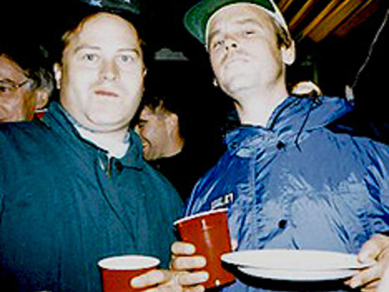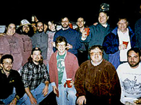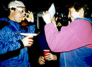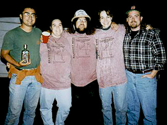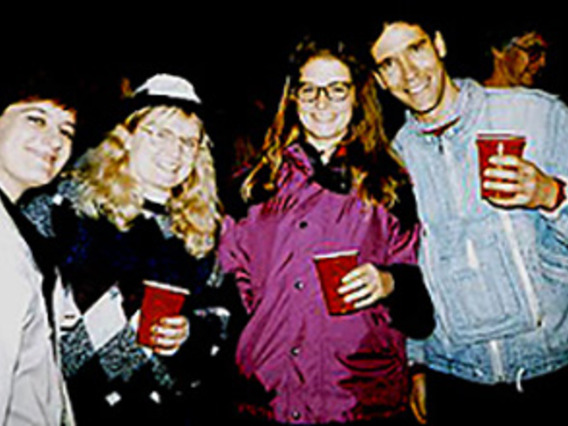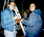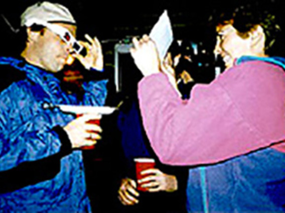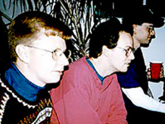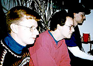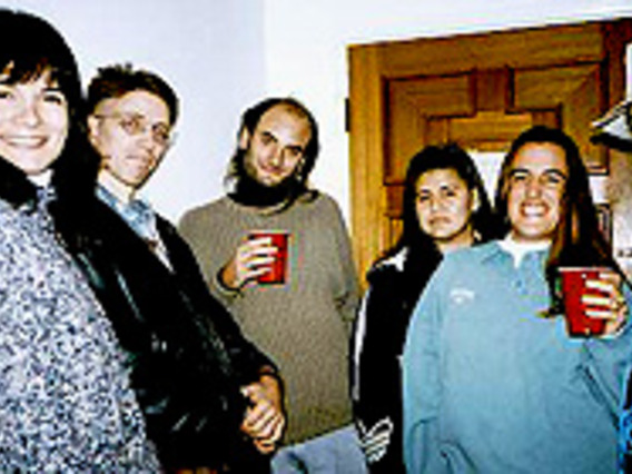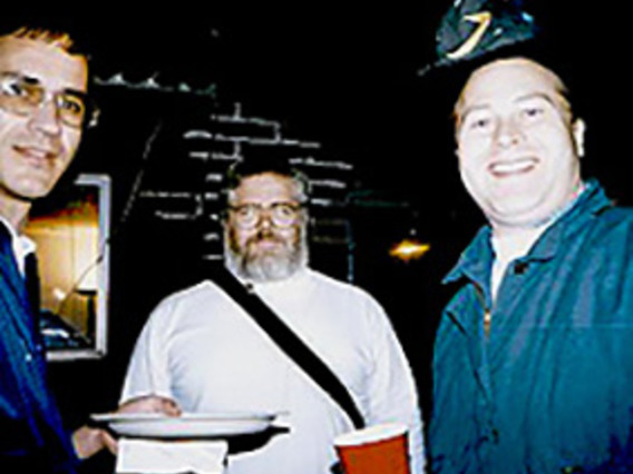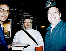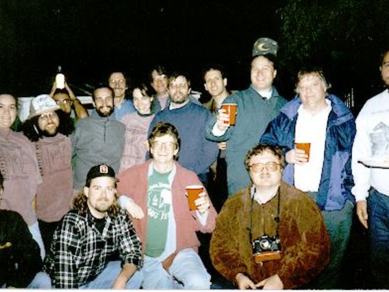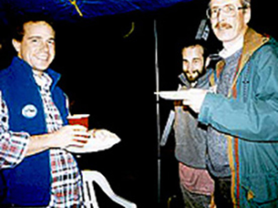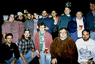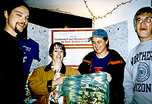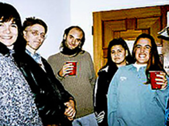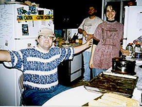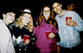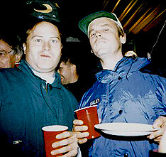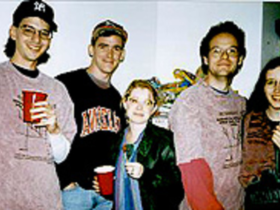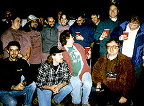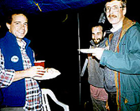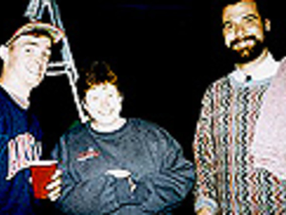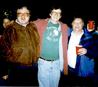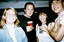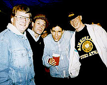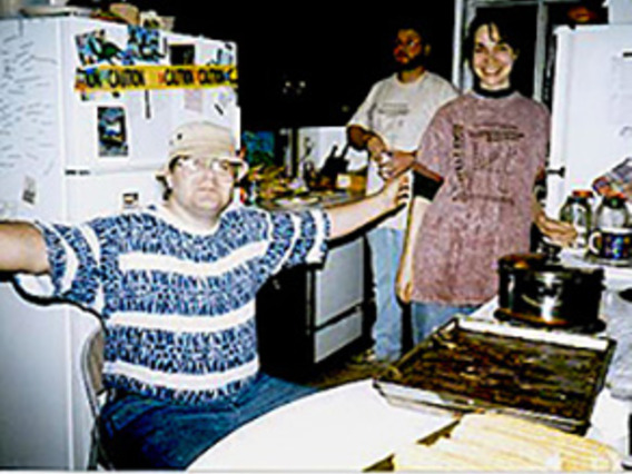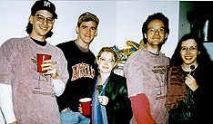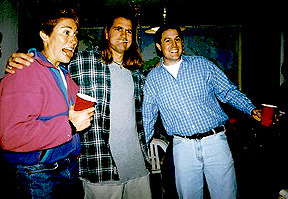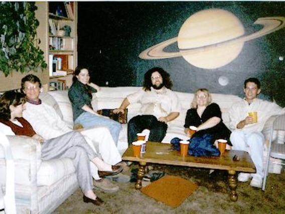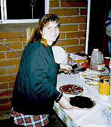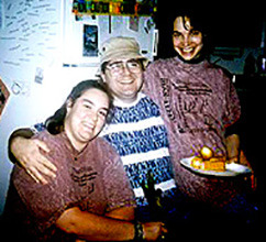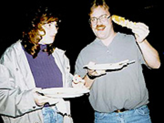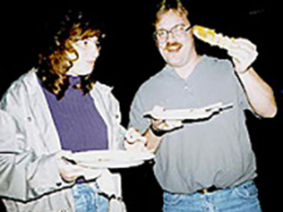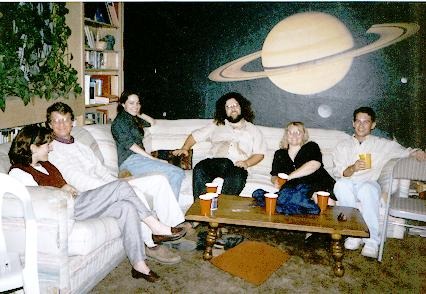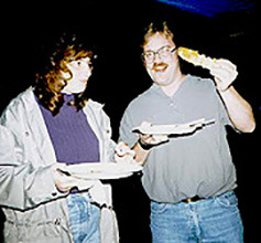 The night before Bratfest, the grad student crew of LPL become expert cheesecake makers. We use only the finest ingredients to make all the cheesecakes that will be at Bratfest, from recipes created for the occasion by Faith Vilas, Bob Marcialis, Ellen Howell, and others through the years. In 1996, we made close to 60 cheesecakes! As you can imagine, all this work requires a little respite, so the evening's "Cheesecake Party" has developed a life of its own. Thanks to everyone who contributed their time and energy!