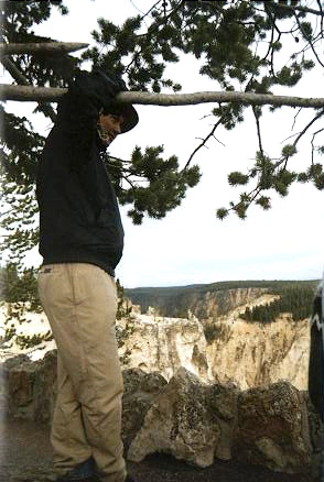 After driving around all day, our last stop made up for it all--the Grand Canyon of the Yellowstone. This is an area where the Yellowstone River has cut a deep canyon for itself. The yellow- tinted rhyolites that gave the river its name line the canyon walls. Eric discusses river downcutting.