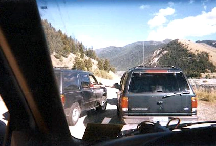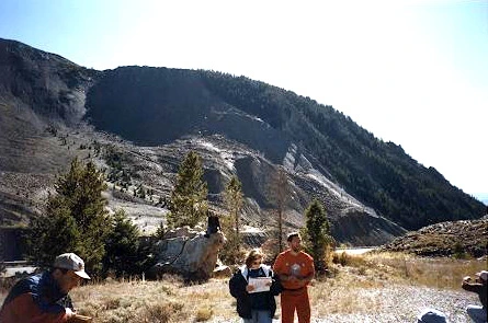 Friday we woke up a little more rested. It was partly cloudy and not too cold. Our first stop was at LeHavre rapids, where the resurgent dome uplift of the Yellowstone caldera is causing rough water in the streambed. Here, Vladimir tries to teach the physics of uplift at 8:30 a.m.
