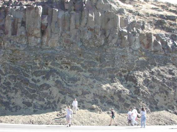 Arriving at The Dalles, we saw a great exposure of pillow basalts, interpreted for us by Laz