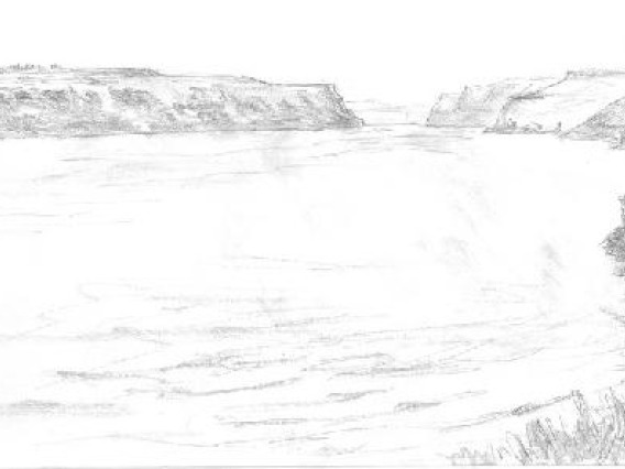 Dry Falls was an excellent example of a flood-carved coulee, and offered a good view and a nice little visitor's center. Abby discussed the very strange rhinoceros mould and Jonathan the geology and history of Dry Falls.