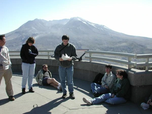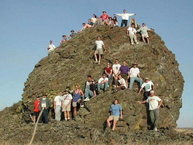 Every five years, LPL organises a major, out-of-area fieldtrip. The first, to Yellowstone National Park, took place in 1997. This trip, the second long-range expedition, was directed to three targets in Washington State, Mt. St. Helens, Columbia River flood basalts, and the Channelled Scablands. The trip was led by Alfred McEwen, Vic Baker, and Laz Kesthelyi. Jason Barnes, Windy Jaeger, and Jani Radebaugh organised it all.