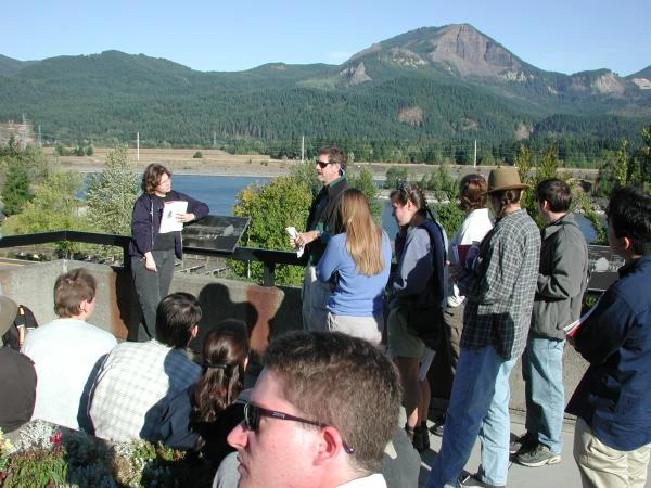 Day 3. We stopped at the Bonneville Dam for talks by Sally on the Bonneville landslide and by Ralph on an eclectic mix of planetary hydroelectric power and salmon spawning.