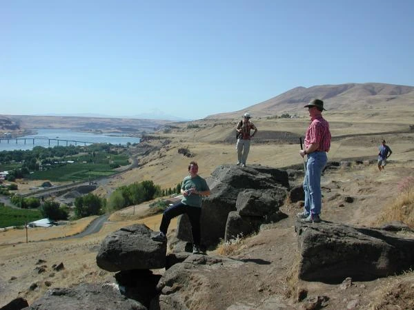 Our last stop of the day was at the Ephrata Gravel Fan. This is a good analogue for the Mars Pathfinder landing site and it hosted a fieldtrip for the Pathfinder Science Team in September 1995. Upon discovering this giant boulder, we clambered up it and posed for a group picture. Getting camera timers to work slowly enough and people to run quickly enough that everyone was facing the camera for the picture was quite a challenge... We stayed the night in Moses Lake again.