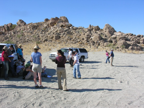 On Day 3, after departing the beach and camping in the Lucerne Valley, we examined a gravel bar left behind by the prehistoric/glacial Lake Manix in the Mojave.