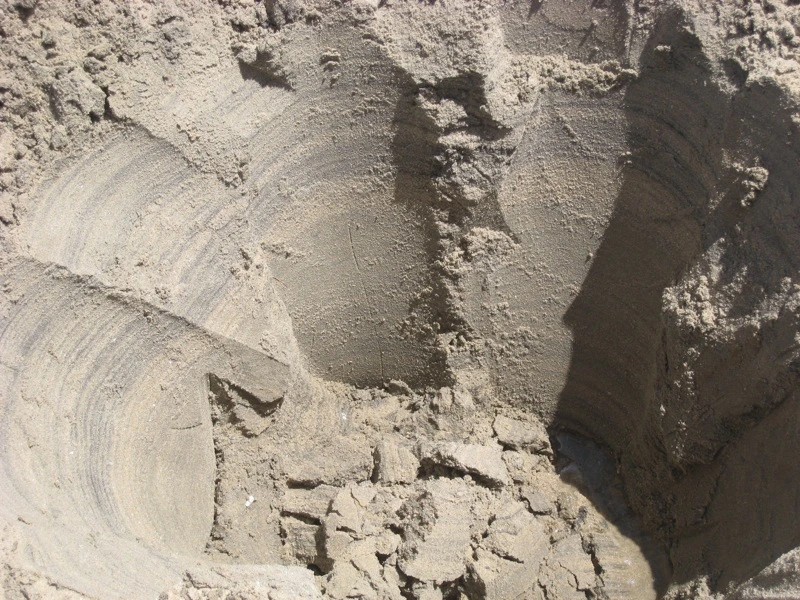We filled in some of the pits with dyed water in an effort to examine the movement of water within the beach sand grains.