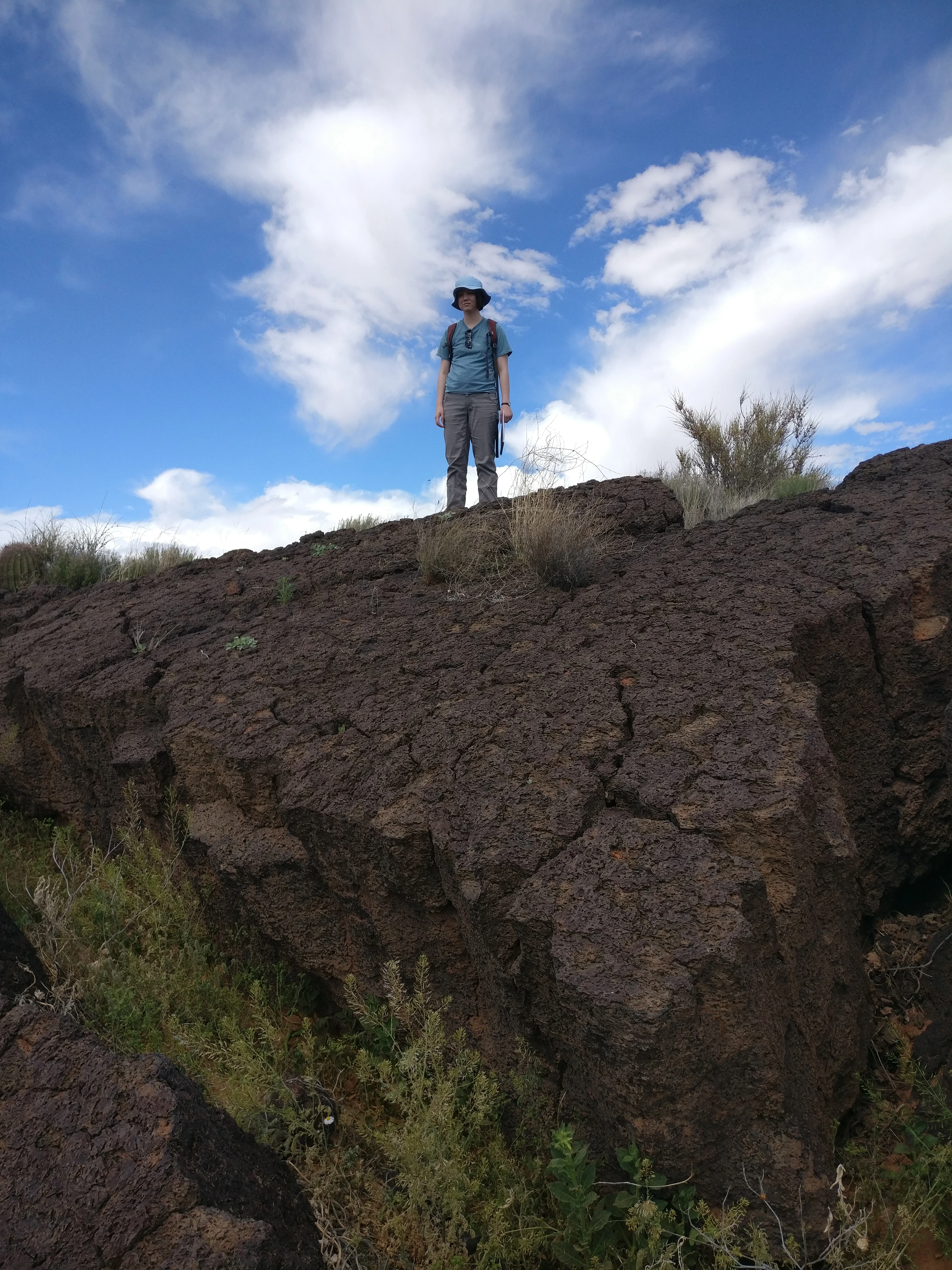 Daniel and Maureen next to a volcanic bomb sag at Kilbourne Hole