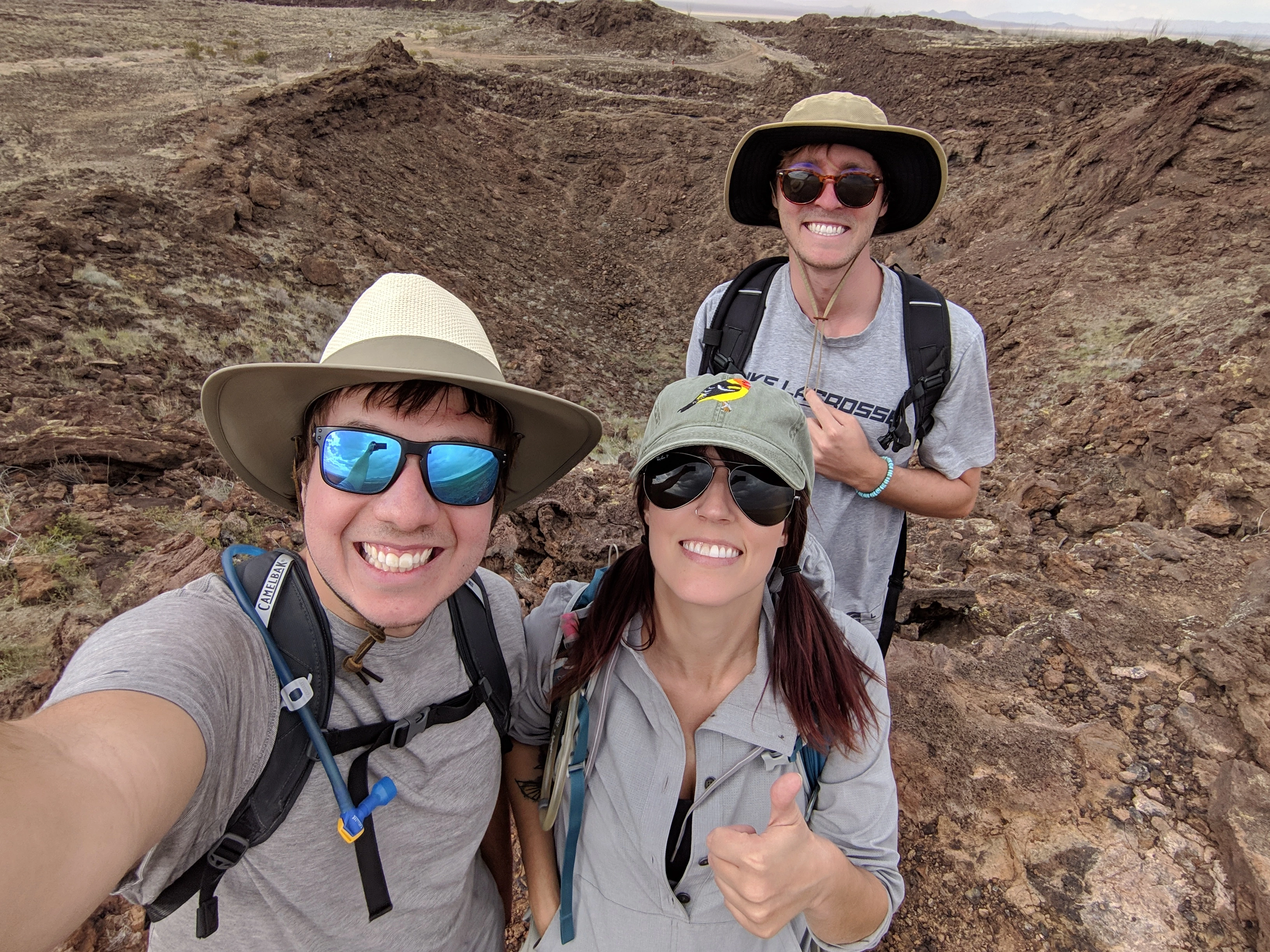 Adam, Laci, and Kyle next to Aden volcanic crater inside the shield volcano