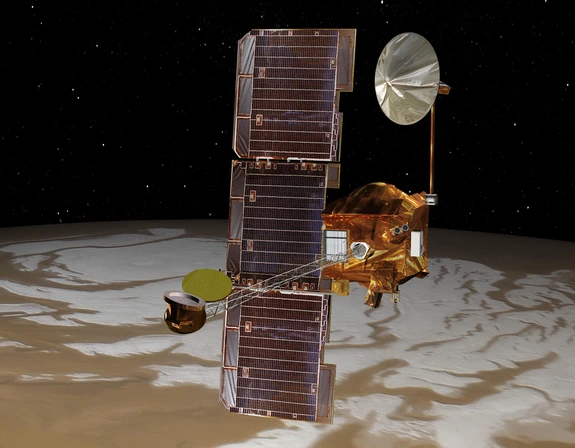 Mars Odyssey is a robotic spacecraft orbiting the planet Mars. Its mission is to use spectrometers and a thermal imager to detect evidence of past or present water and ice, as well as study the planet's geology and radiation environment. It is hoped that the data Odyssey obtains will help answer the question of whether life existed on Mars and create a risk-assessment of the radiation that future astronauts on Mars might experience. It also acts as a relay for communications between the Mars Science Laboratory, and previously the Mars Exploration Rovers and Phoenix lander, to Earth.